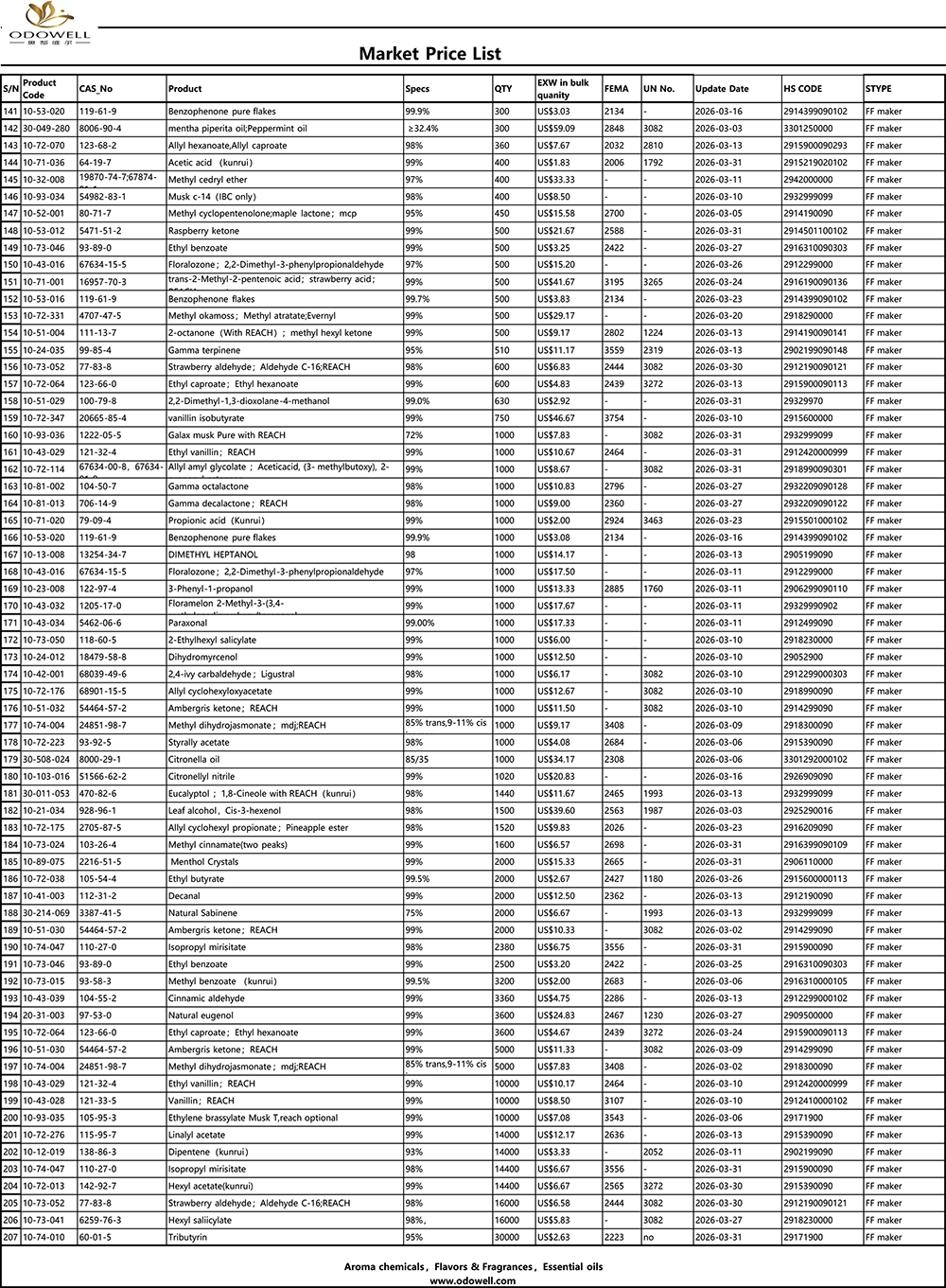 รายการราคาตลาด Odowell-2026.3.1-2026.3.31